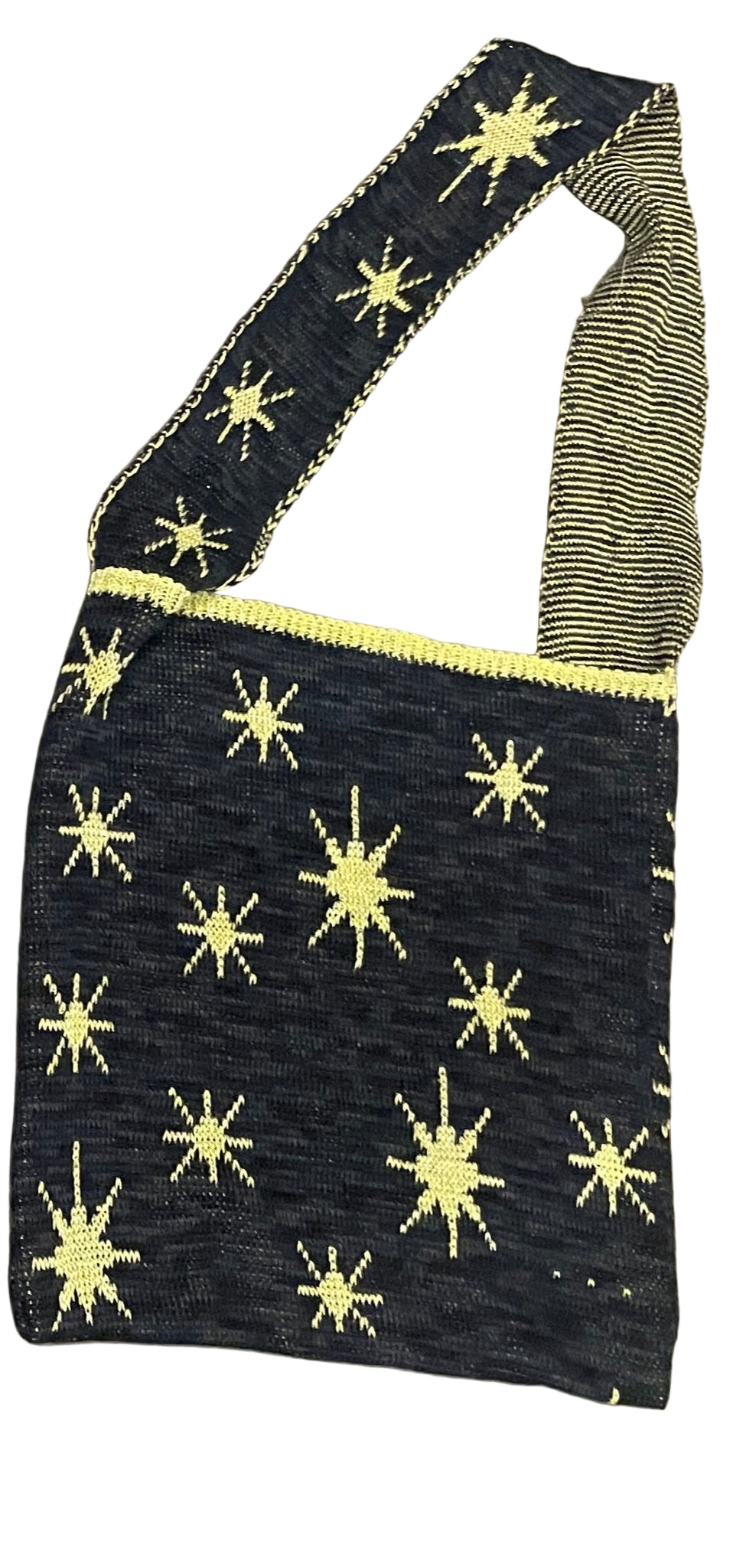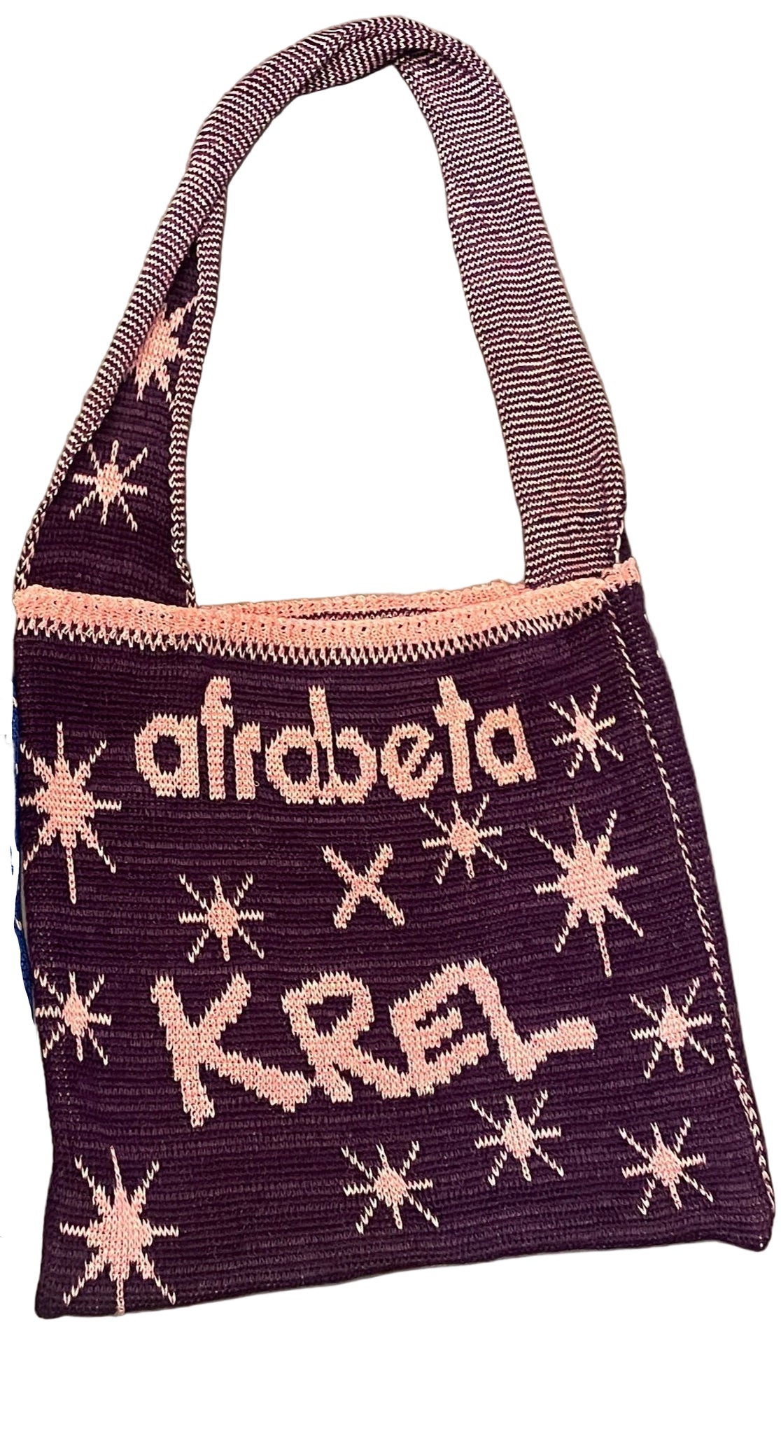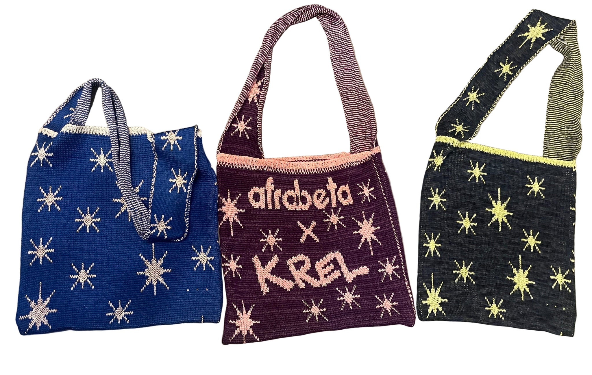 This knit tote bag was designed for the Cosmic Constellation concert on December 19, 2024. Created through a collaboration between Afrobeta and KREL, it celebrates their performance at the Miami Beach Bandshell as part of the creative Laboratories series. These tote bags feature a playful glow-in-the-dark effect, combining function with artistic flair.